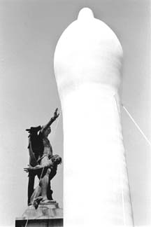 Grupos contra el sida colocaron este condón gigante en la Alameda