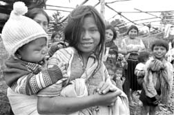 Al mediodía todos habrán cumplido alguna tarea. Aprovechando un poquito de sol, los hombres tienden sus camisas mojadas. Las mujeres secan sus huipiles sobre sus cuerpos. Se espulgan el cabello mutuamente y platican. Y los niños, en medio del drama, ríen.