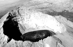 Al fondo del cráter, el domo de lava que obstruye algunos