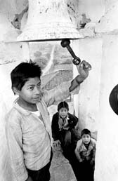 Niños tocan la campana de San Miguel Yalchiptic