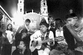Niños callejeros mitigan hambre y frío en la Plaza Santa
