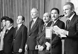 Francisco Labastida Ochoa, acompañado por los nuevos funcionarios,
