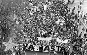 ¿En qué se parece esta fotografía a la embajada de México en Ecuador? En que ambas fueron tomadas el pasado lunes 12 de enero, durante la Jornada Mundial por la Paz en Chiapas. La gran marcha del Distrito Federal, que reunió a 300 mil personas por lo menos, ha dado lugar a las más disímbolas interpretaciones. Masiosare le propone que analice usted la imagen con la mayor sangre fría, antes de unir las hipótesis de la columna izquierda con los especialistas en psicología de las masas de la derecha.