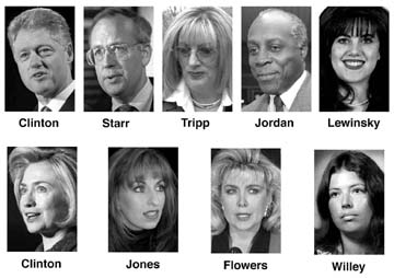 Bill Clinton; el fiscal Kenneth Starr; Linda Tripp, confidente de
