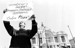 fuera de las oficinas de Banca Serfin, en avenida Juárez,