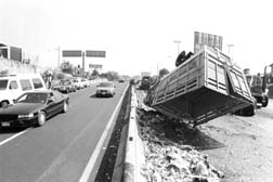 que transportaba refrescos se volcó; un policía que custodiaba el