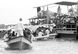 Paseo por el río en la tradicional festividad en Tlacotlalpan.