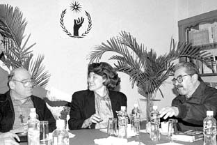 Samuel Ruiz, Mireille Roccatti y Sergio García Ramírez