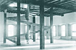 En el Sesc Pompéia, Lina Bo Bardi conservó las naves del conjunto industrial existente, concentrando las nuevas áreas deportivas en vertical dentro de dos torres de concreto aparente. Una de ellas alberga la cafetería, los vestuarios, escaleras y elevadores, y la otra encierra la alberca en el primer nivel y canchas/pistas polideportivas en los superiores. Cada dos niveles de la primera torre se corresponden con las dobles alturas de la segunda, y están conectados por siete puentes, en distintas direcciones, que rememoran algunos momentos heroicos del Movimiento Moderno. El rígido prisma de