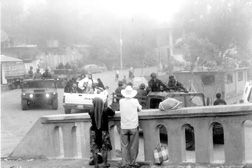 Vehículos del Ejército con soldados a bordo se dirigen a