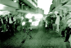 24 de febrero de 1997. Eran nueve y estaban armados. Uno apuntó a los empleados y clientes con una ametralladora, los otros lo hicieron con pistolas. El vigilante de la sucursal del Banco Santander en el centro comercial Galerías del Calzado fue desarmado. ``No te muevas o vamos a comenzar una balacera y aquí hay mujeres y niños'', le advirtieron los ladrones.