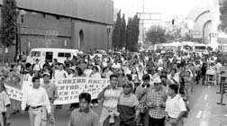 Durante la marcha contra la violencia en el estado