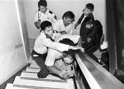 Forcejeo entre guardias de la dependencia y