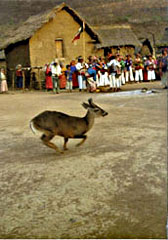 Pues bien, al profundo universo sagrado de los huicholes se refiere la colección fotográfica, sorprendente y magnífica, de Pablo Ortiz Monasterio, Corazón de venado. Es una serie que no muestra la vida cotidiana de los huicholes sino su principal ceremonia ritual. Corazón de venado es un símbolo que enlaza, como distintas facetas de una sola divinidad, como distintos rostros de una misma fuerza espiritual y vivificante, al venado, al peyote y al maíz. Un venado celestial, Káuyúmari, fecunda con su sangre la tierra donde nace el maíz o Hikú; de su propia sangre el venado celestial renace, resucita, dando vida. El corazón del que mana su sangre, el corazón que sostiene y alienta la vida del Hikú o maíz (y que por ello sostiene y alienta la vida del huichol), también es Híkuri, el peyote. Por ese corazón se mide la vida de cada año y de cada sacerdote. Los pueblos huicholes emprenden la cacería del venado o marra para ofrendarlo a la madre tierra, a la Tatei Yurienaka, donde el corazón renacerá como Híkuri y como vivificante maíz o Hikú. Por eso cazan al venado y al peyote, para ayudar al mundo. De ambos corazones del venado celeste renacerá cada año el hombre, la mujer, el niño huichol.