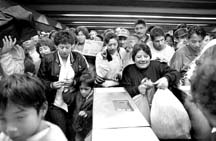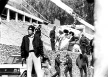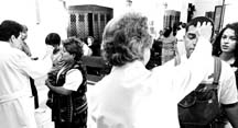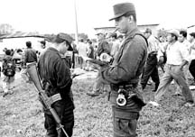 La escena del percance; derecha: cadetes tratan de impedir el acceso