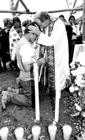 El padre Michel Chanteau oficia una ceremonia