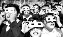 Eclipse parcial de sol visto desde la ciudad de México.