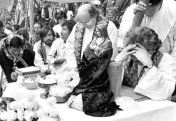 Michel Chanteau, durante una misa en Acteal.