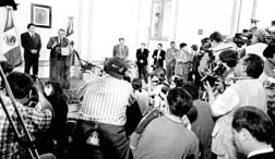 Conferencia de prensa en la Secretaría de Gobernación.