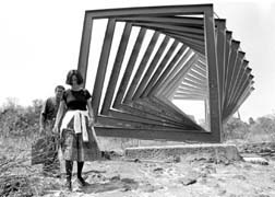 Estudiantes en el espacio escultórico de la UNAM.