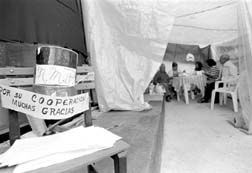 Campamento de los trabajadores huelguistas sobre la