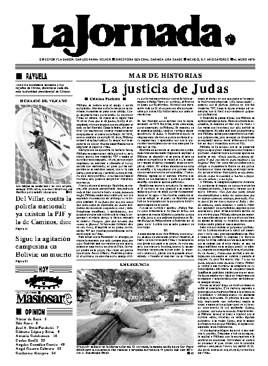 Primera Plana Contraportada Editorial Opinión Masiosare La Jornada Semanal Suplementos Fotos Cartones de los moneros de La Jornada Búsquedas en La Jornada