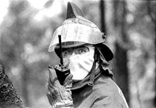 Bombero en la brega en la zona Los