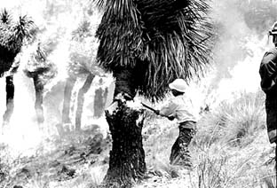 Combate de un incendio en la sierra de Puebla. El senador
