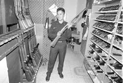 Un policia de guardia en la armería del cuartel
