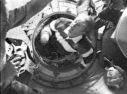 Tras 12 de años de permanencia en el espacio, la base rusa Mir dejará de funcionar definitivamente el próximo año. En la primera gráfica, el transbordador Discovery se desacopla de la estación, en lo que fue la última misión Rusia-EU. Andrew Thomas, astronauta estadunidense que permaneció en el laboratorio espacial, conforme al programa de cooperación Mir-NASA firmado en 1992, regresa a bordo de la nave. En el futuro, la Estación Espacial Internacional (EEI) continuará con ese tipo de proyectos Ť Fotos: Ap/NASA y Reuters/NASA