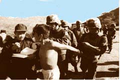 Cuando los indígenas estaban en el piso, arreciaron los interrogatorios: ``A algunos les pegaron para subir al camión porque no entendían el español. A otro lo amarraron porque no quería aceptar lo que ellos decían de que teníamos cosas de la guerrilla. Lo amarraron y lo acusaron de tener uniformes y pasamontañas'', cuenta Miguel Hernández.