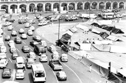 Trafico y planton en el zócalo capitalino. Foto: José Antonio