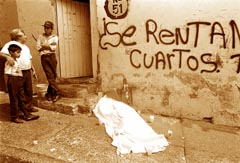 Hojalatería 68. La oscura vecindad llena de bolsas de basura y bicicletas encadenadas a las rejas, con decenas de ojos que atisban por las ventanas, tiene un altar a la Virgen de Guadalupe, como la inmensa mayoría de las vecindades.