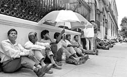 Miembros de los Cuatrocientos Pueblos frente a Gobernación.