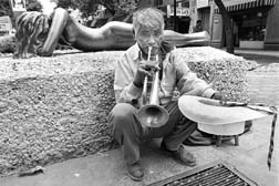 Trompetista y musa en la Zona Rosa. Foto: José Carlo González