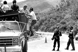 Retén de policías judiciales en el cruce de Pueblo Viejo, entre Aguas