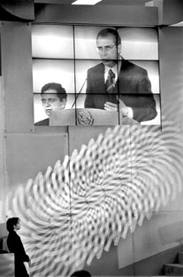 Bajo la imagen del presidente Ernesto Zedillo durante