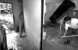 Con una pala, un damnificado -vecino de la presa El Sordo- saca el