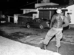 Vigilancia frente a la casa de Fernando Peña Garavito, contra quien se