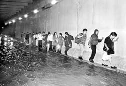 En San Antonio y Periférico, transeúntes sufren las consecuencias de la tormenta nocturna. Foto: Carlos Ramos Mamahua