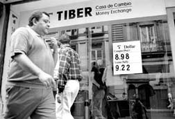 La paridad en una casa de cambio en el Centro Histórico.