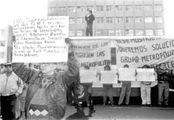 Trabajadores del la ex Ruta 100 realizan un mitin frente