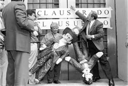 Perredistas encabezados por Armando Quintero colocaron monigotes