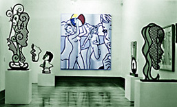 Roy Lichtenstein, una de las figuras capitales del pop art norteamericano, ocupa actualmente varias salas del primer piso y la planta baja, en el Museo del Palacio de Bellas Artes. La exposición, titulada Roy Lichtenstein, imágenes reconocibles, está compuesta por pinturas, esculturas y obras gráficas cuyas fechas se extienden desde 1964-65 hasta los años noventa, aunque una pequeña y longuilínea talla de madera llamada India con niño -puesta ahí al parecer para testimoniar actitudes estéticas anteriores por su forma clásico-moderna- es de 1952-53.