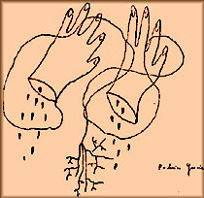 las palmas de las manos tiene, pegadas, sendas rosas rojas. Otra rosa