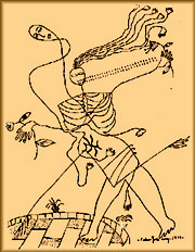 (Comienzan a danzar entre las figuras en zancos)