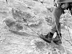 Huellas de un dinosaurio descubiertas en un campo de fósiles en Cal Ork'o, cerca de Sucre. Los científicos dijeron recientemente que han encontrado lo que se piensa pueden ser dos huevos de dinosaurio en el sureste de Bolivia, en lo que se considera uno de los yacimientos de fósiles más grandes en el mundo. Serán enviados a Suiza para analizarlos en un laboratorio Ť Foto: Reuters