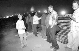 Un grupo de migrantes aguarda el momento oportuno para