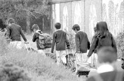 escolares nuevos, rumbo al primer día de clases.