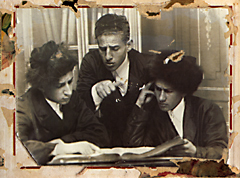 Entre los niños que fueron a rodear la mesa estaba, por supuesto, mi padre, Hershl Berman. Moreno, con los ojos, el pelo y los caireles de niño ortodoxo, muy negros. Se acodó frente a la burbuja.